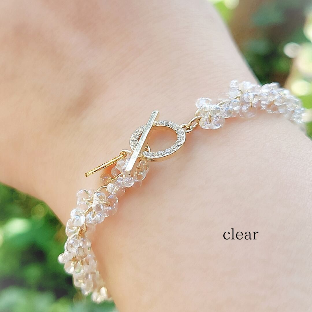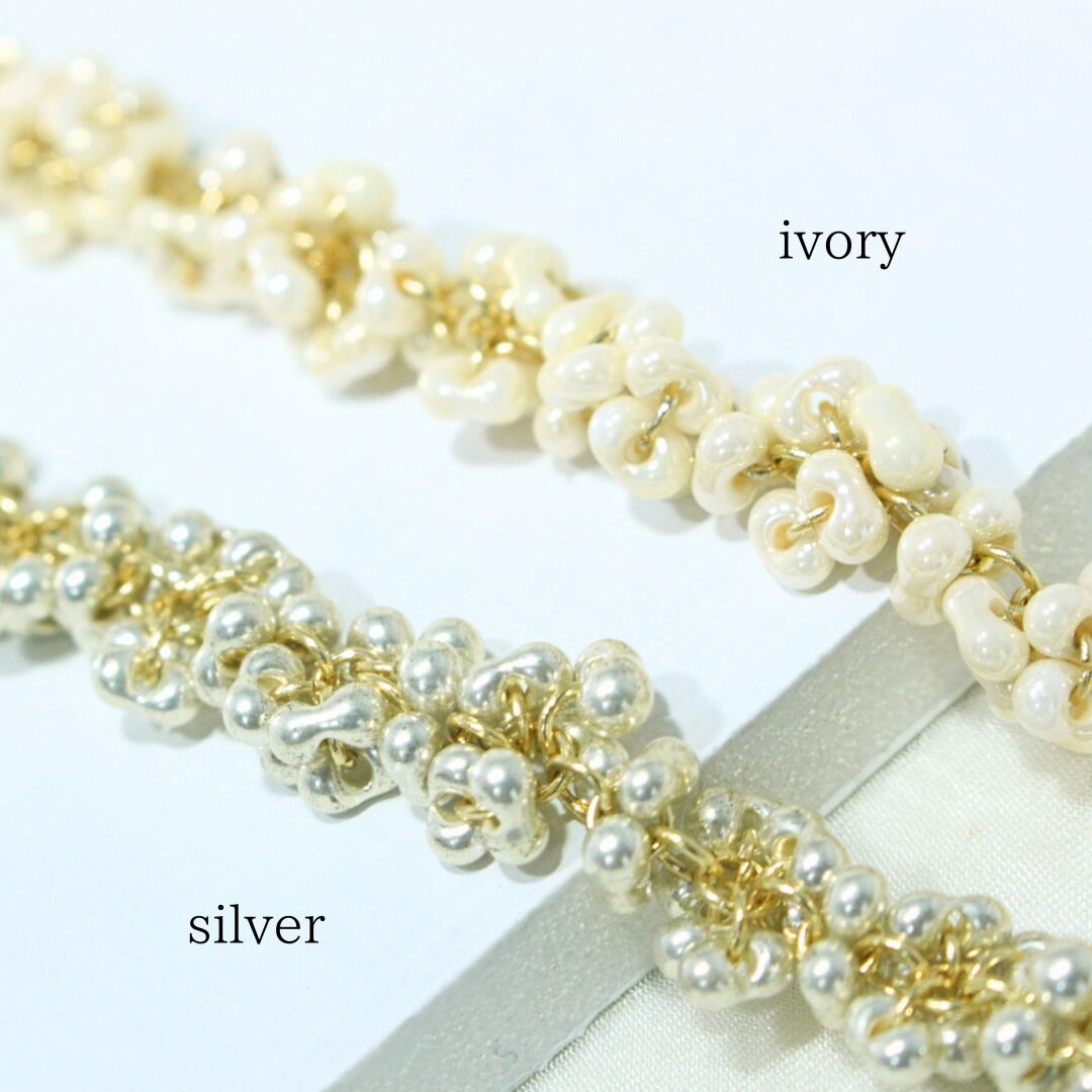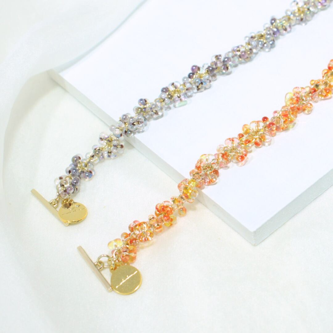 小さな輝きを持ったチェコガラスを一粒一粒丁寧につなぎ
