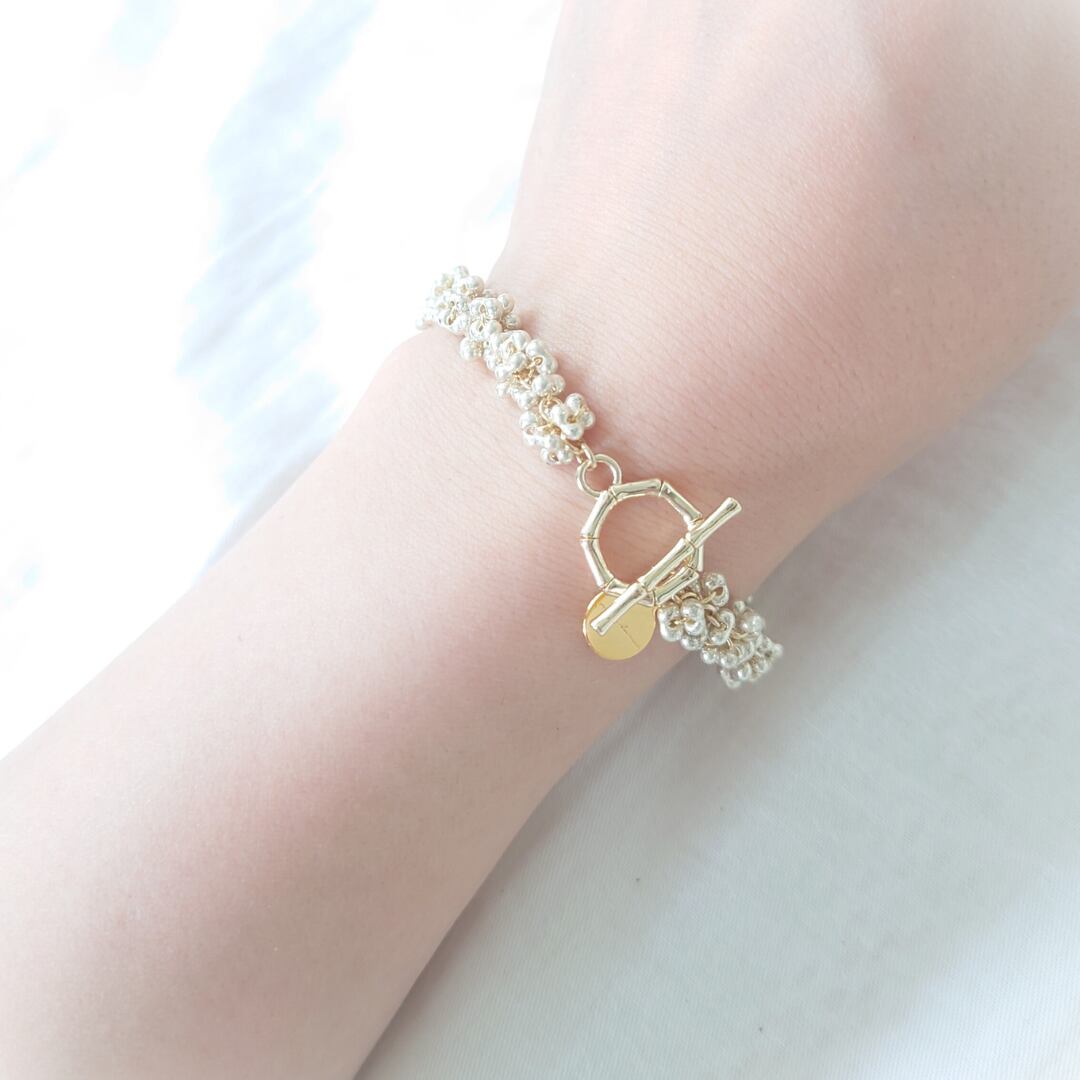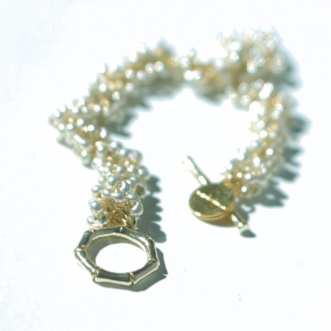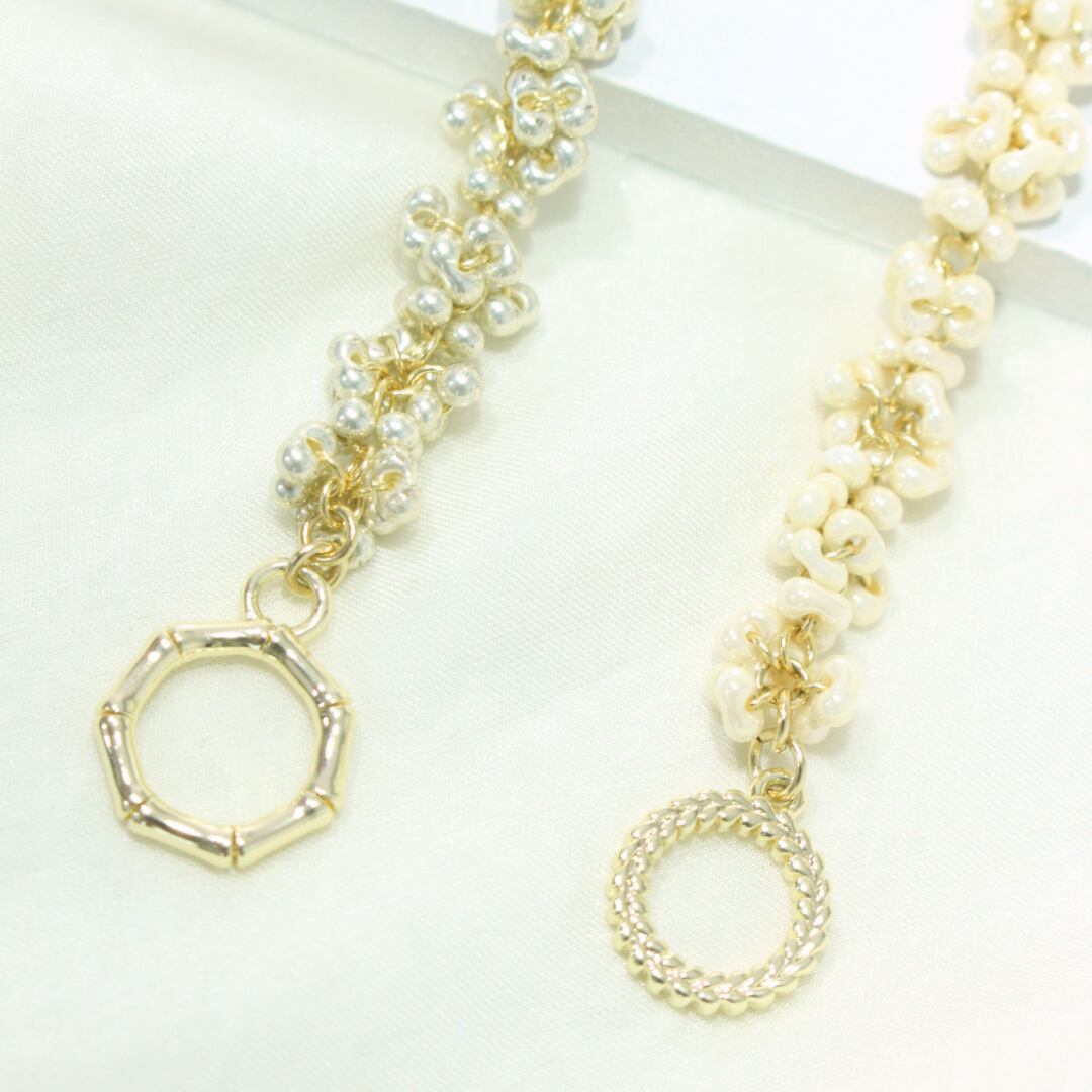 小さな輝きを持ったチェコガラスを一粒一粒丁寧につなぎ