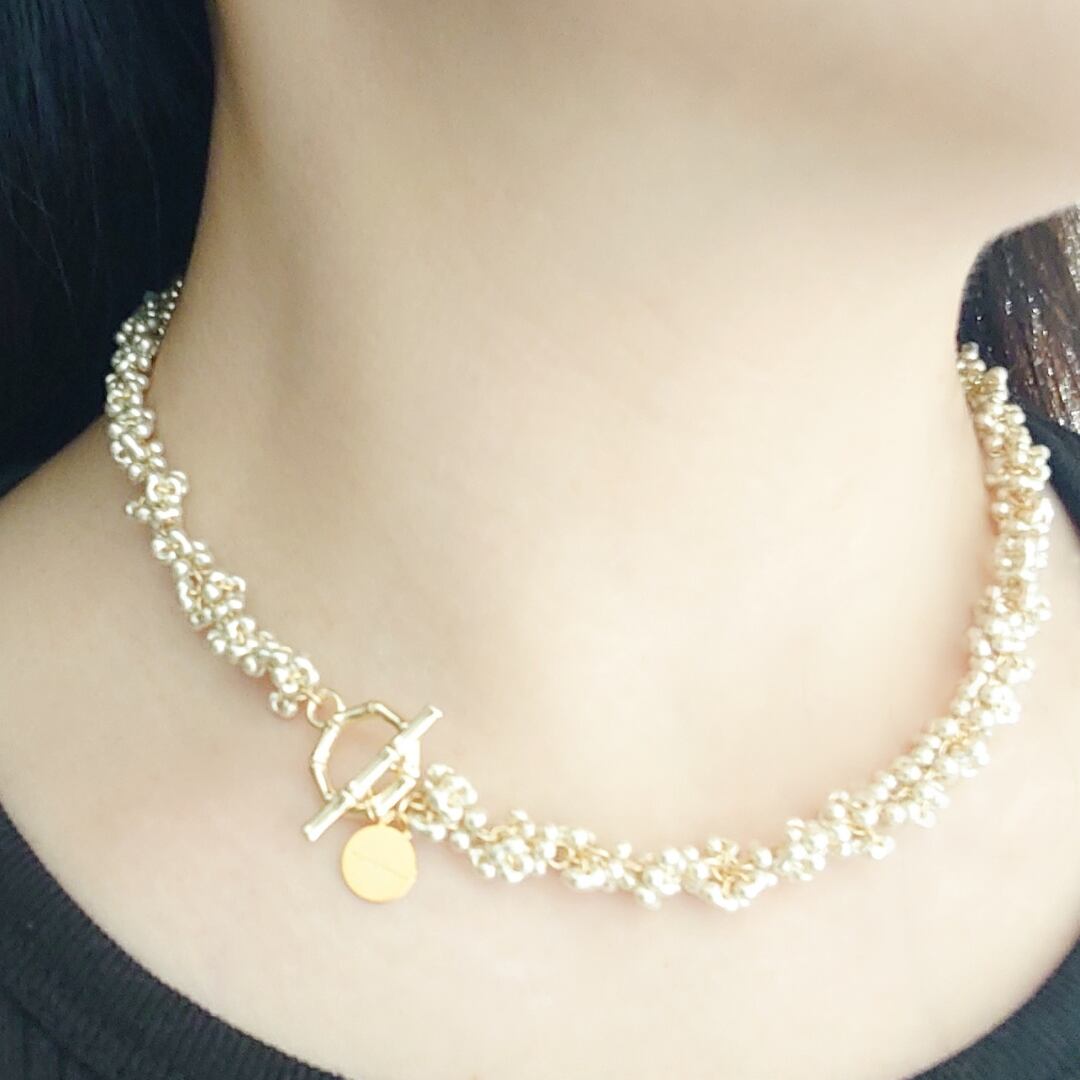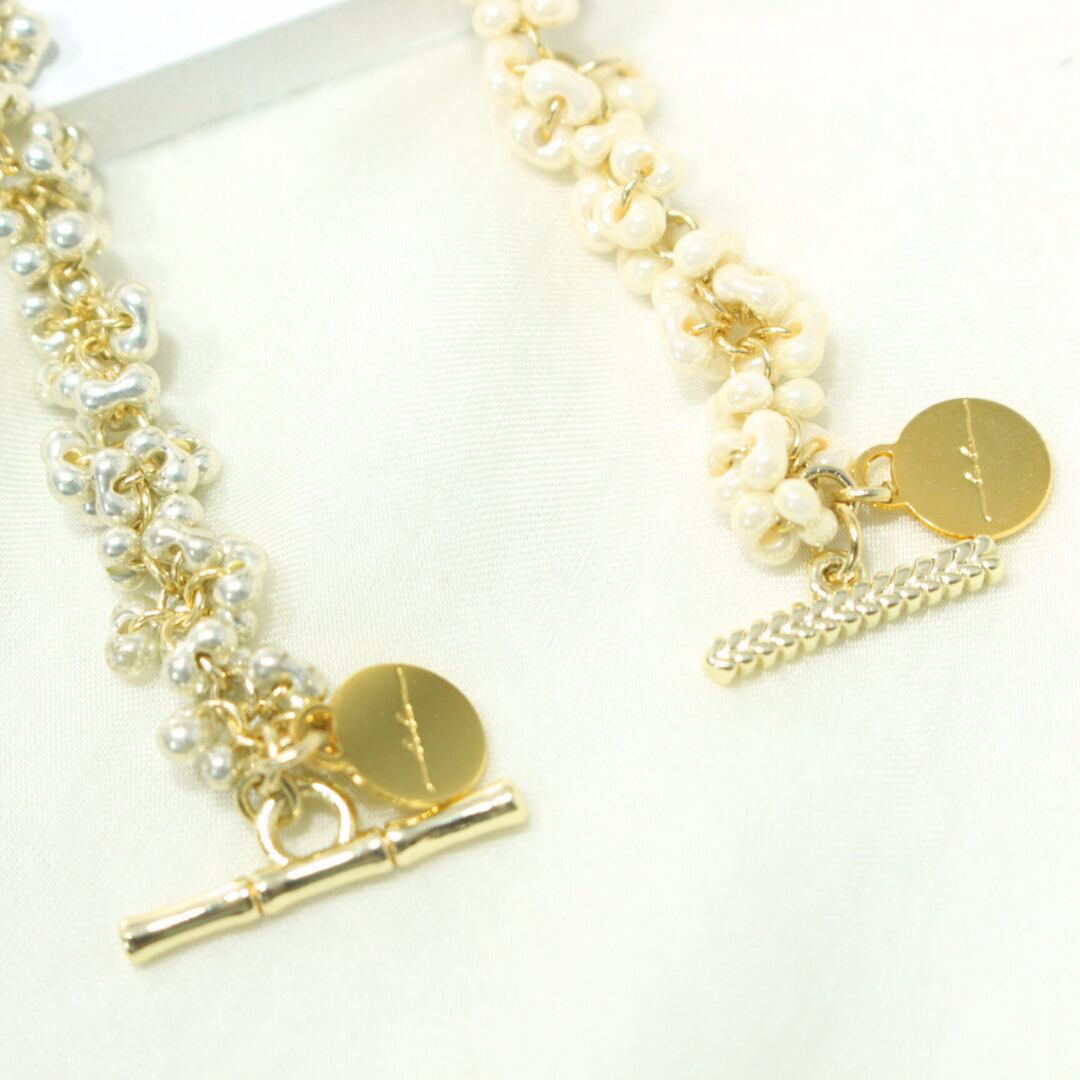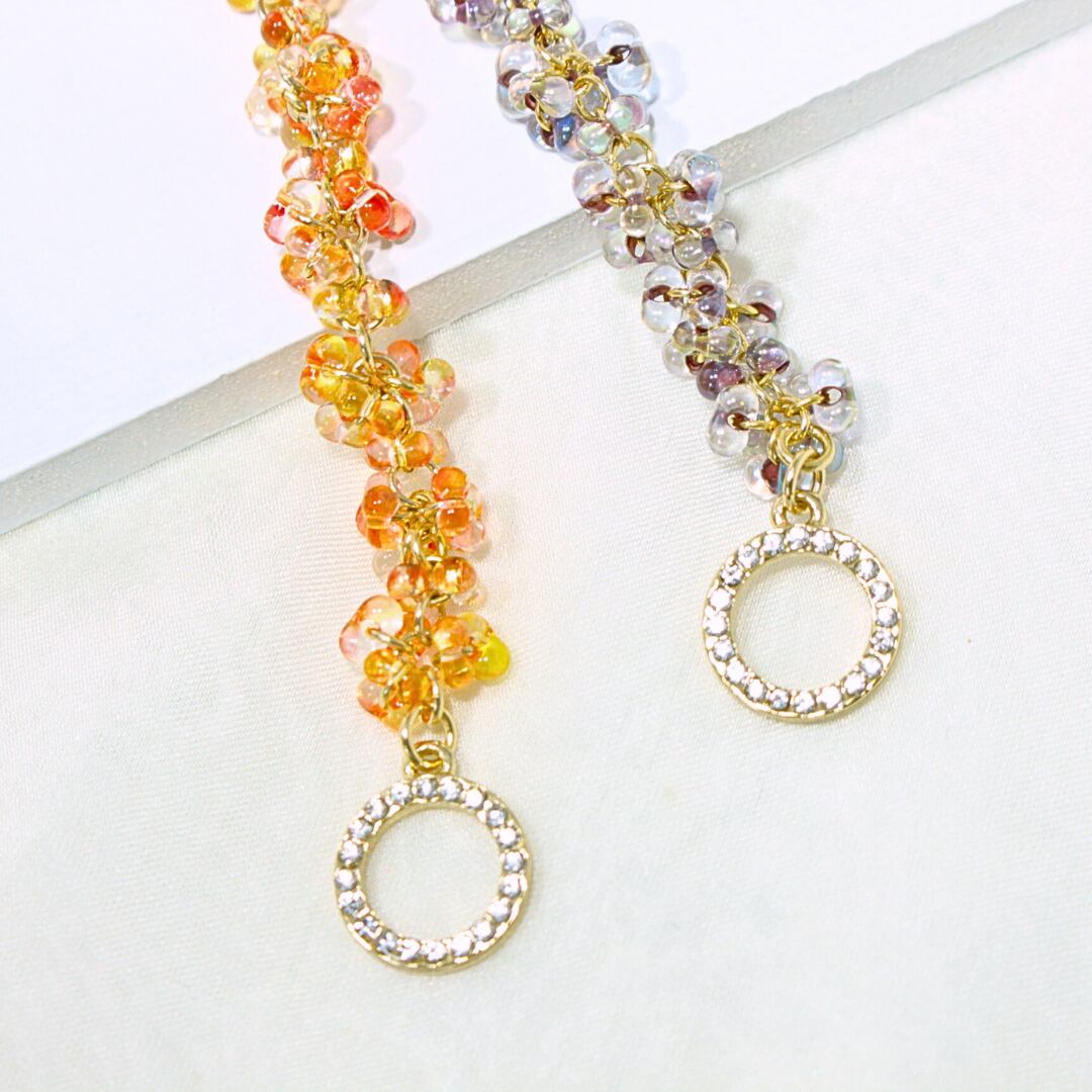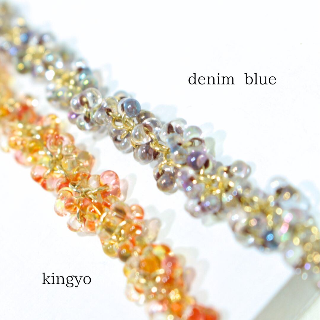 小さな輝きを持ったチェコガラスを一粒一粒丁寧につなぎ