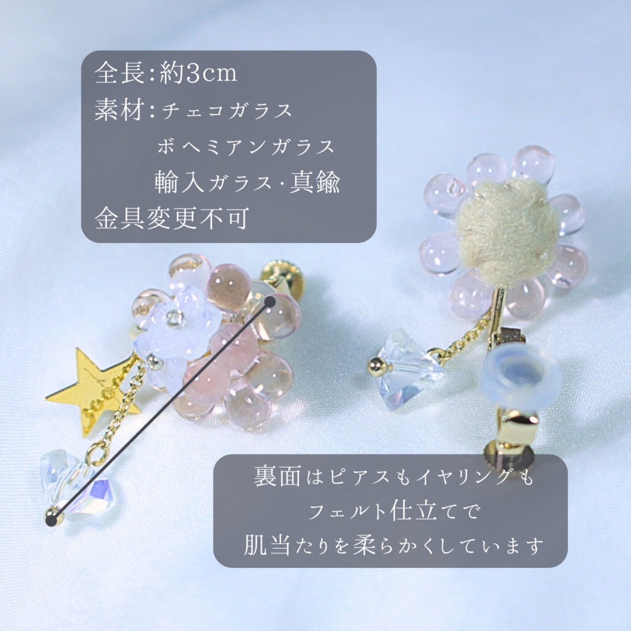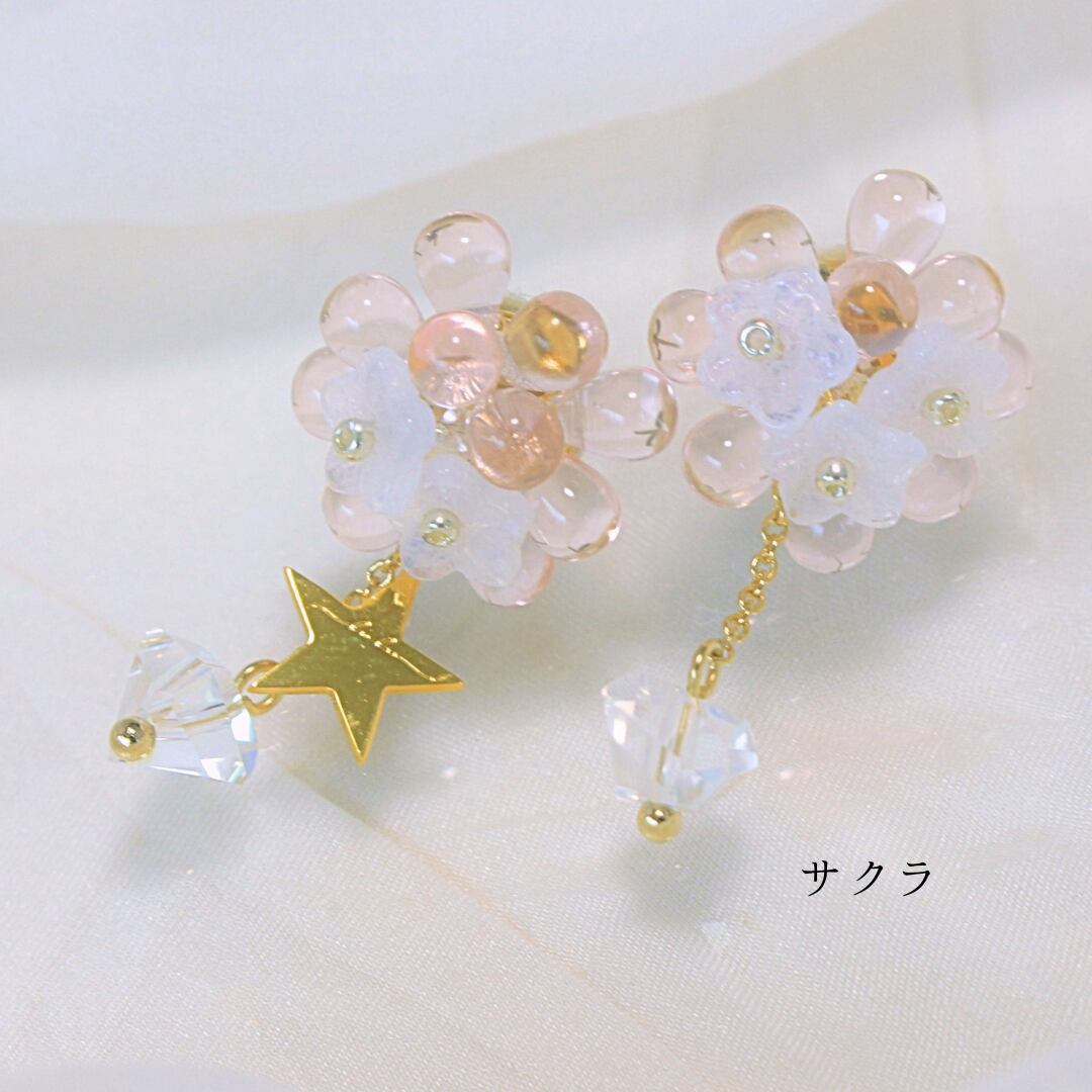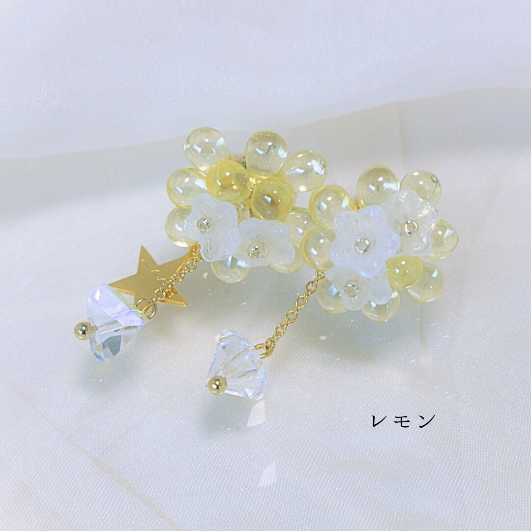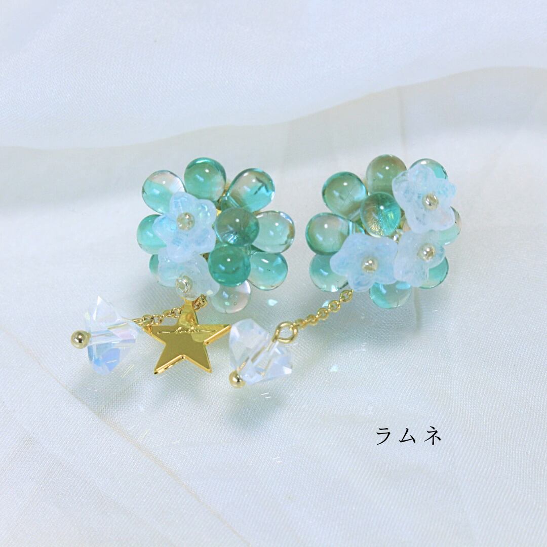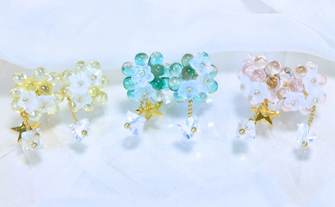 耳元にきらっとひかるガラスのブーケ