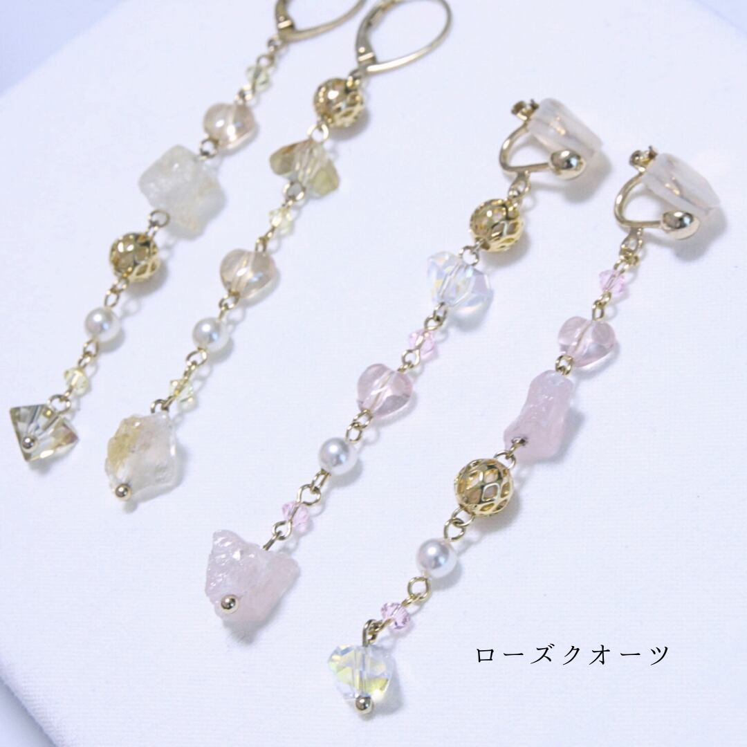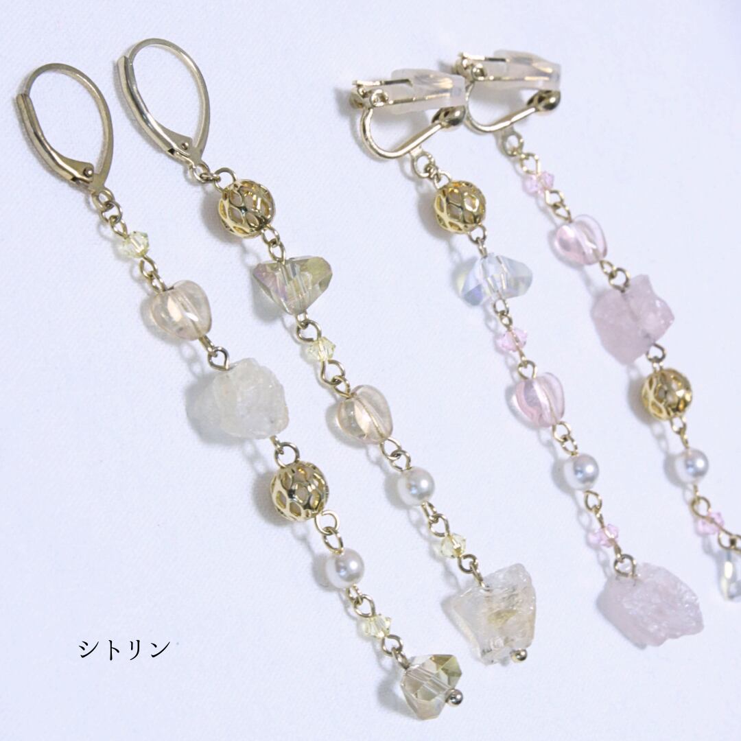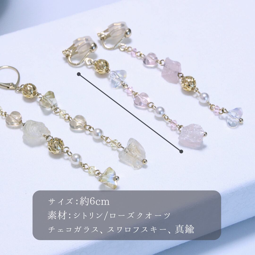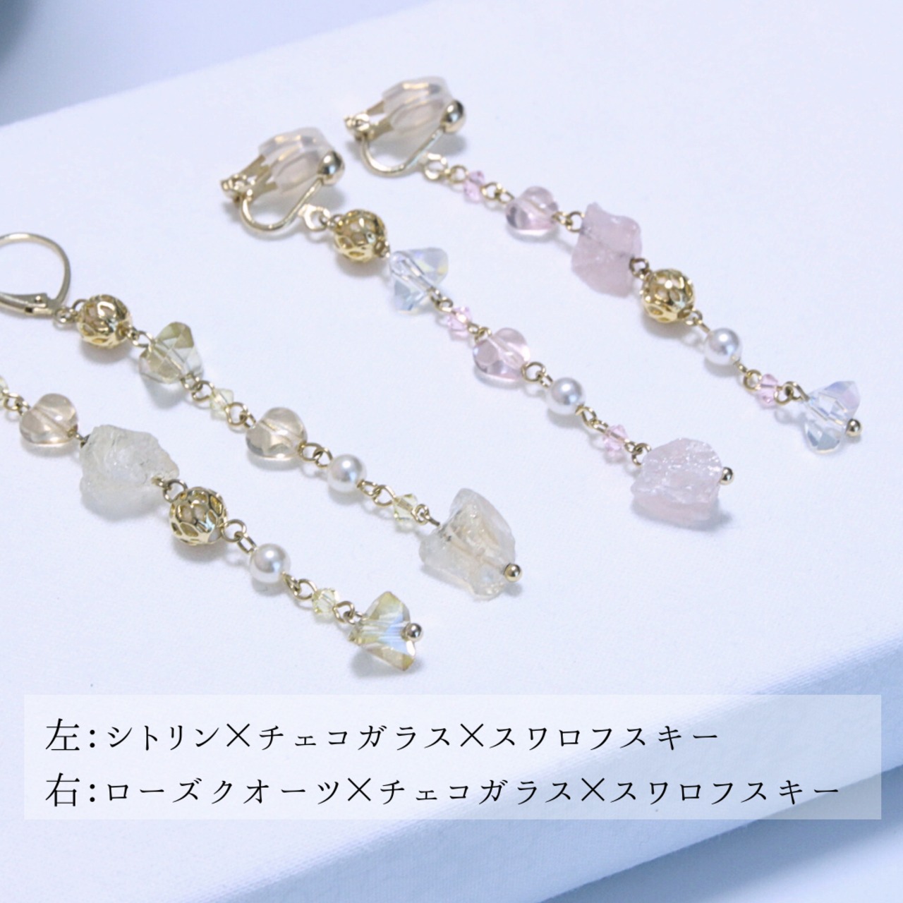 天然石(シトリン・ローズクオーツ)とチェコガラス、スワロフスキー