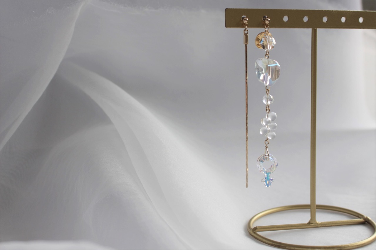 すべてガラスパーツになるので一般的なピアスより重みがあります。