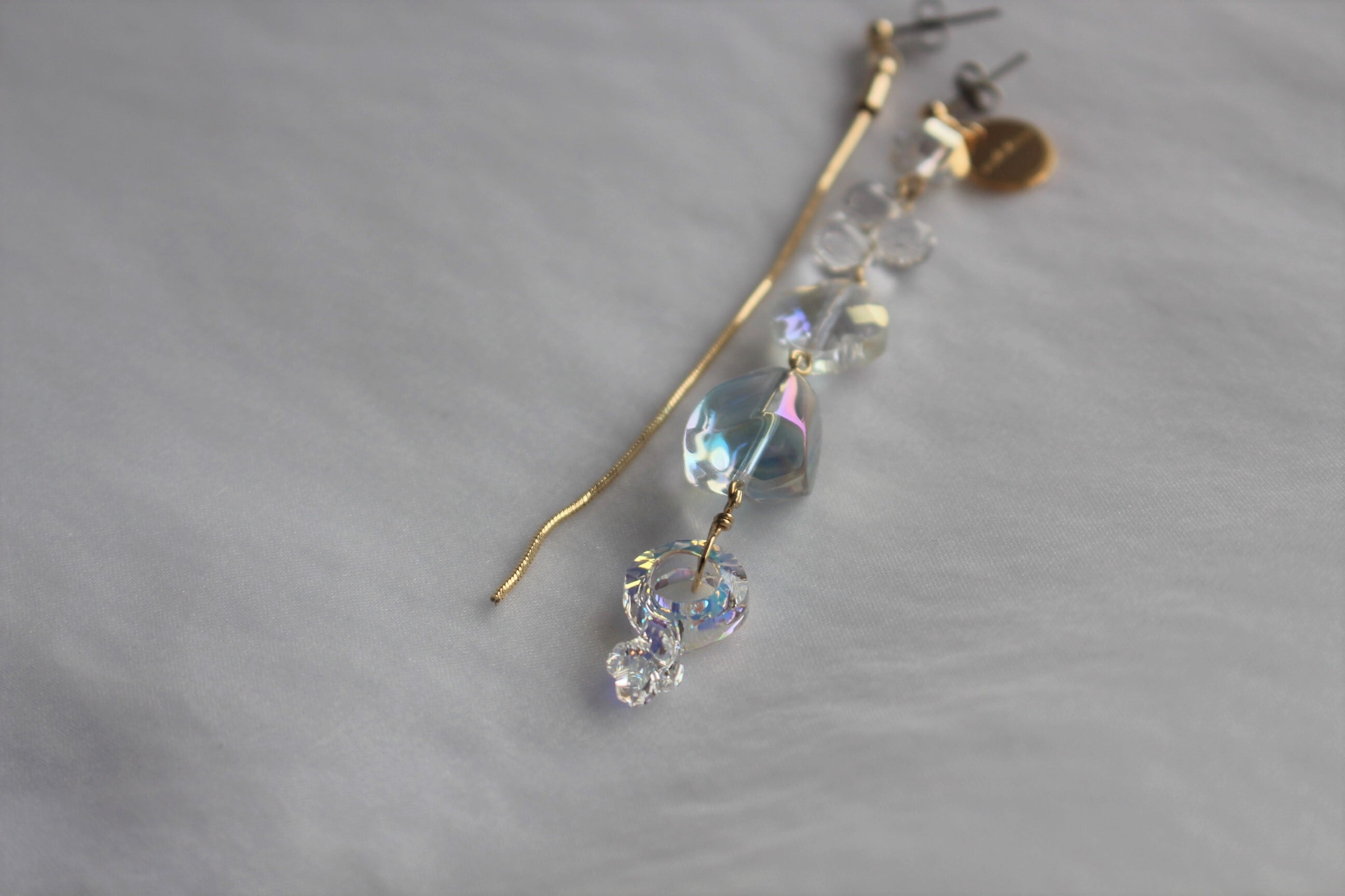 (チェーンはガラスピアスのほうより若干短くお作りしています)
