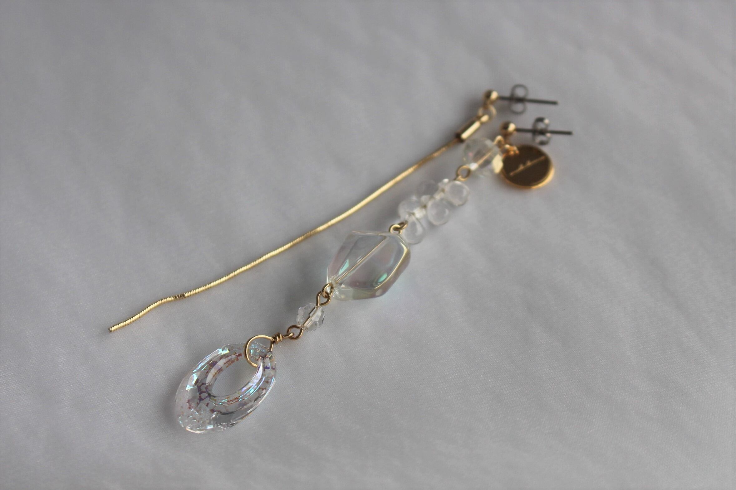 いろんな形のガラスを集めた光の欠片ピアス