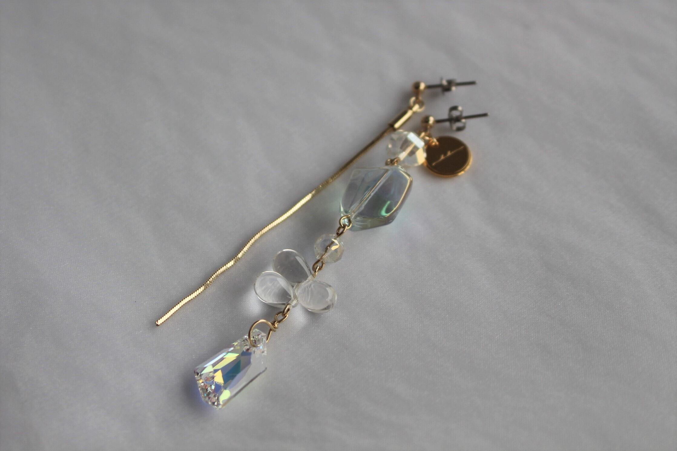 いろんな形のガラスを集めた光の欠片ピアス