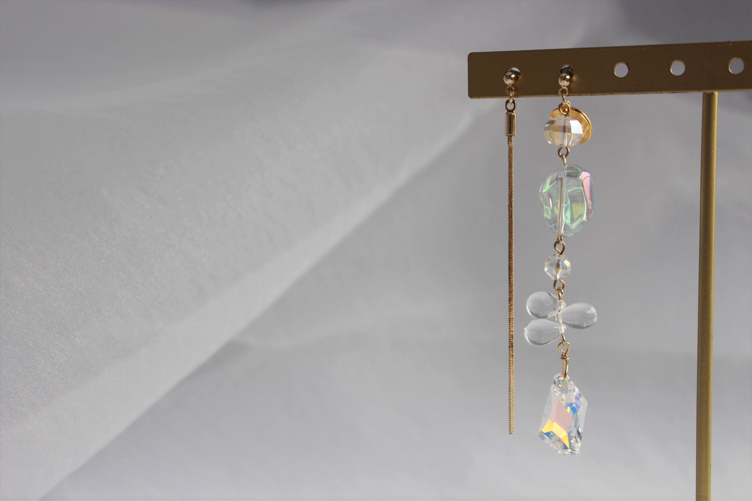 (チェーンはガラスピアスのほうより若干短くお作りしています)