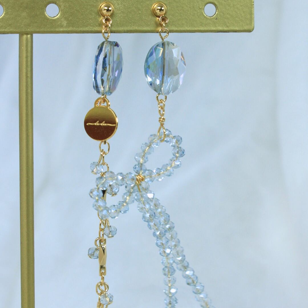 小さなガラスの粒のリボンにとクセありチェーン