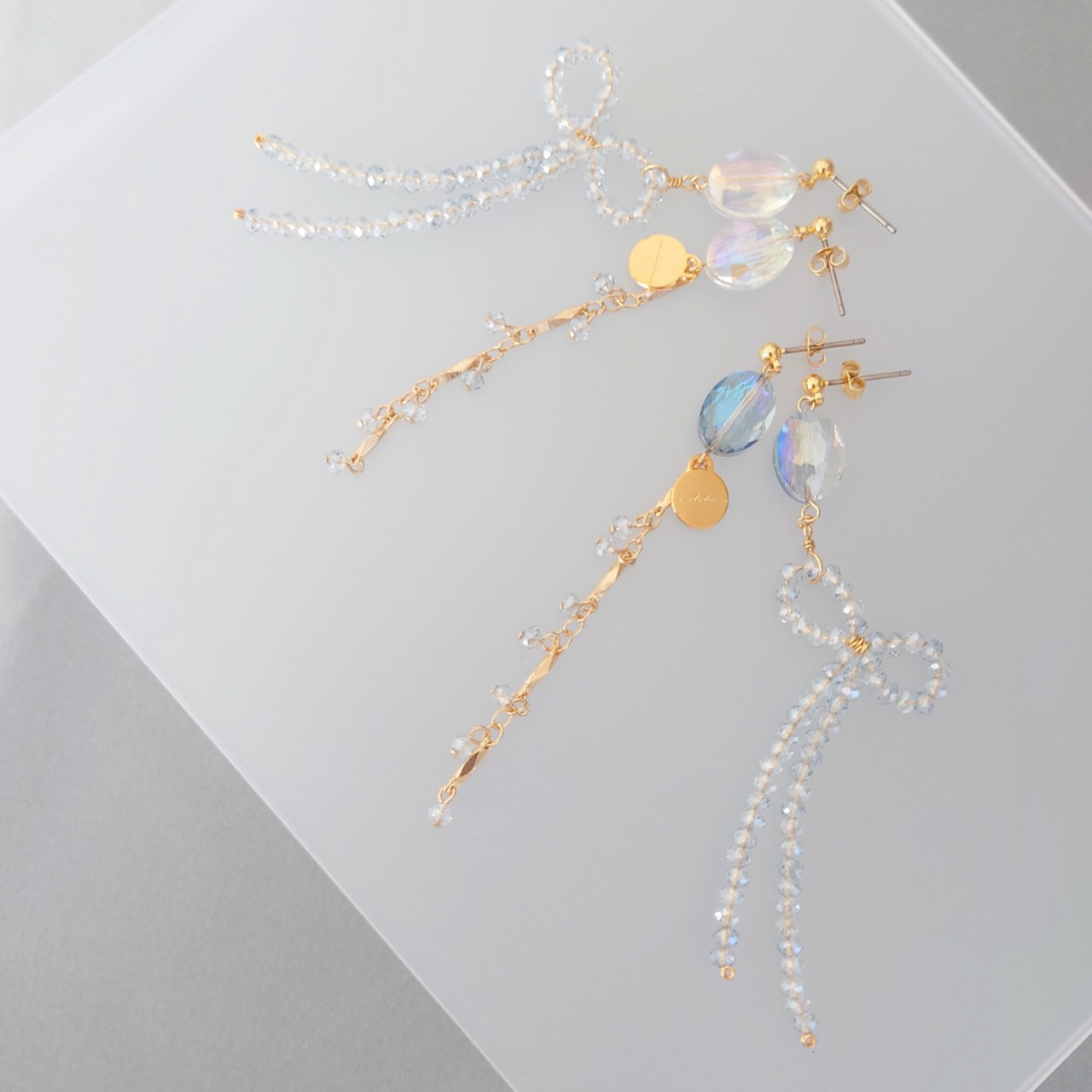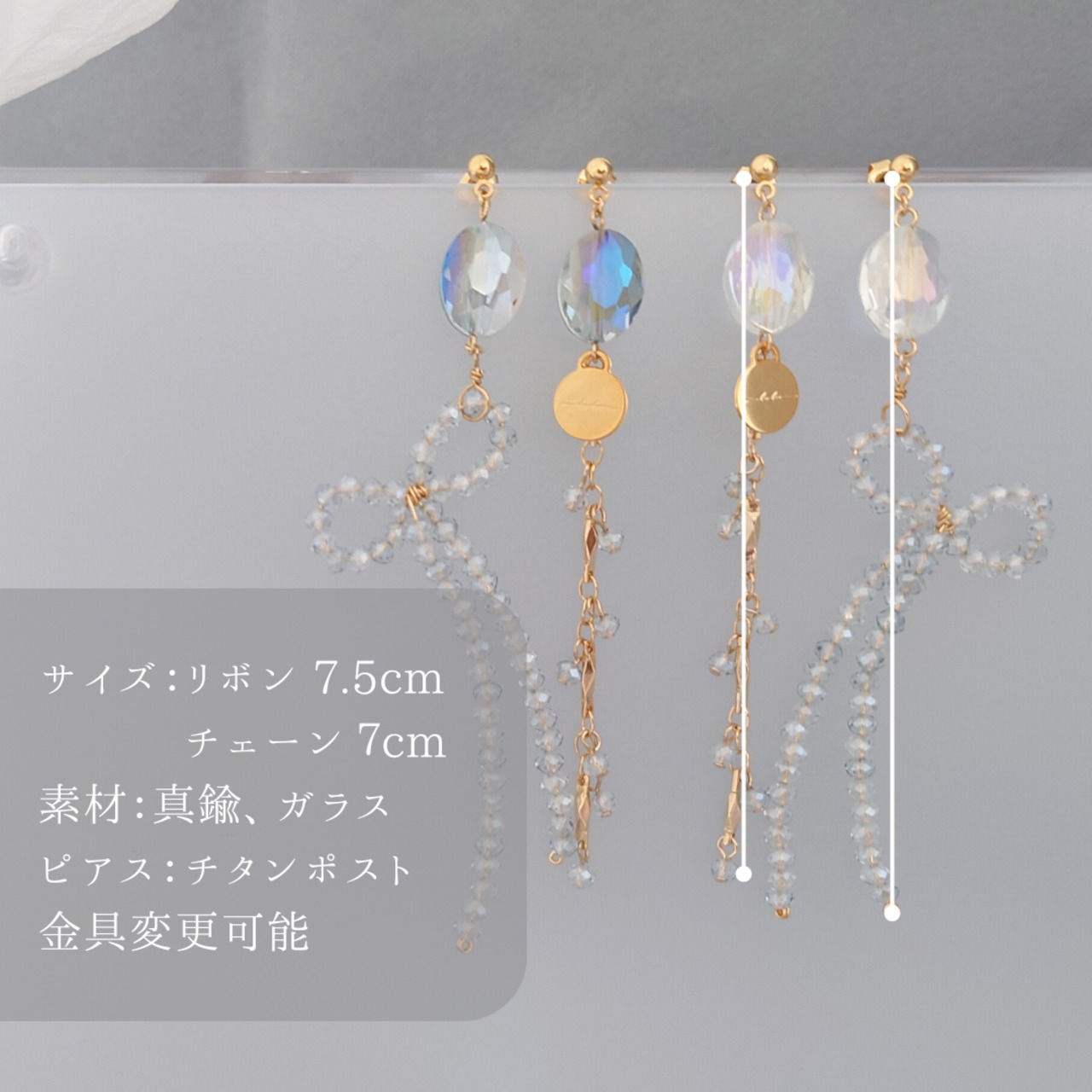 ヴィンテージガラス、スワロフスキー、チェコガラス、ドイツガラスと色々は場所のものを利用しているため一言でガラスといっても様々です。が、ガラスなので落とした際当たり所が悪ければ欠けたり割れたりも考えられます。お取り扱いに注意いただきながらそれぞれの個性をお楽しみいただければと思います。